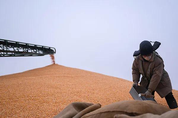 3月3日,工作人员在中央储备粮松原直属库有限公司内整理收购的粮食。